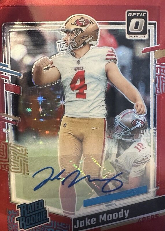 Auctions Ending Soon for Jake Moody 2023 Optic #289 Rated Rookie Autographs - Red Stars /11 RAW