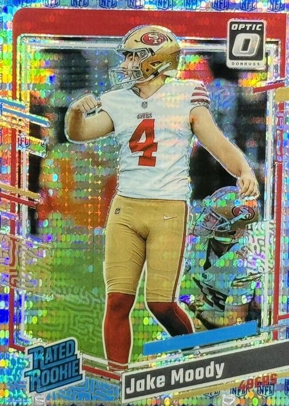This card is 1 of 53 Jake Moody's card variations in the 2023 Optic set being tracked by Sports Card Investor, including Base, Blue Hyper, Blue Scope, Green Hyper, and Green Velocity.