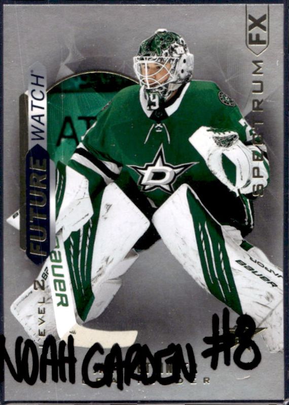 The Jake Oettinger 2020 SP Authentic #S-85 Spectrum FX Rookie card is 1 of 11 Jake Oettinger's card variations in the 2020 SP Authentic set being tracked by Sports Card Investor, including Base /999, Black Gold Ink, Future Watch Acetate, 2020 Upper Deck Young Guns Acetate, and Chirography.
