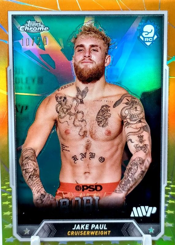 Auctions Ending Soon for Jake Paul 2024 Topps Chrome #1 Orange & Yellow Refractor /20 Rookie RAW