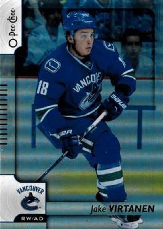 Jake Virtanen's Hockey cards are available in at least 10 sets. Jake Virtanen's biggest 7-day price movers are 2017 O-Pee-Chee #132 Rainbow Foil, 2017 O-Pee-Chee #132 Retro Blank Back, and 2017 O-Pee-Chee #132 Black Rainbow Foil /100.