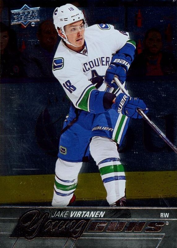 This card is 1 of 7 Jake Virtanen's card variations in the 2015 Upper Deck set being tracked by Sports Card Investor, including Young Guns Base, Young Guns - Jumbo, Young Guns - Acetate, Young Guns - UD Exclusives /100, and Young Guns - UD Midnight /25.