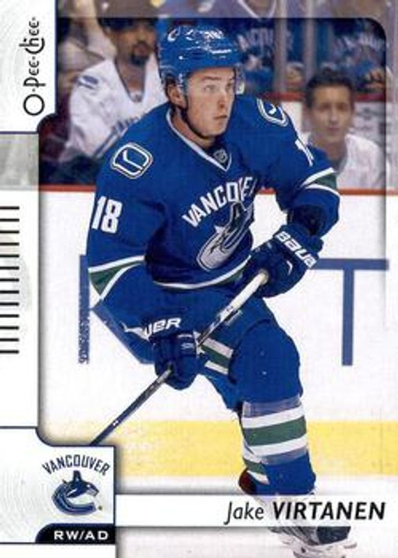 The Jake Virtanen 2017 O-Pee-Chee #132 Base card is 1 of 6 Jake Virtanen's card variations in the 2017 O-Pee-Chee set being tracked by Sports Card Investor, including Rainbow Foil, Red, Retro, Retro Blank Back, and Black Rainbow Foil /100.