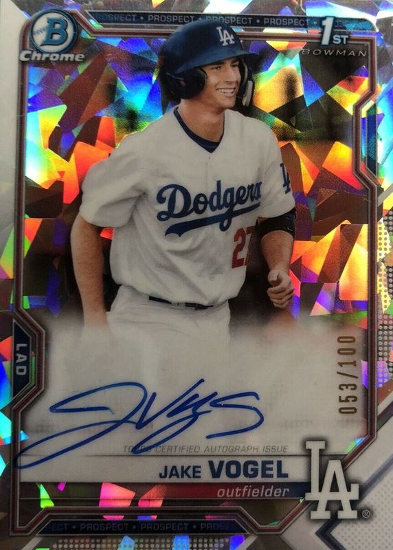 JAKE VOGEL 2021 BOWMAN CHROME 1ST ATOMIC REFRACTOR DODGERS AUTO /100 Q4357
