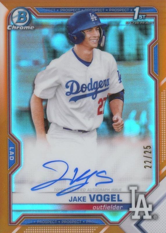 2021 Bowman Chrome Jake Vogel Auto Orange Refractor /25 1st Prospect Dodgers