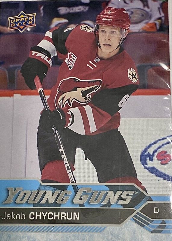 This card is 1 of 9 Jakob Chychrun's card variations in the 2016 Upper Deck set being tracked by Sports Card Investor, including Young Guns Base, Young Guns Canvas, Young Guns - Clear Cut, Young Guns - Gold Rainbow Foil, and Young Guns - Silver Foil.