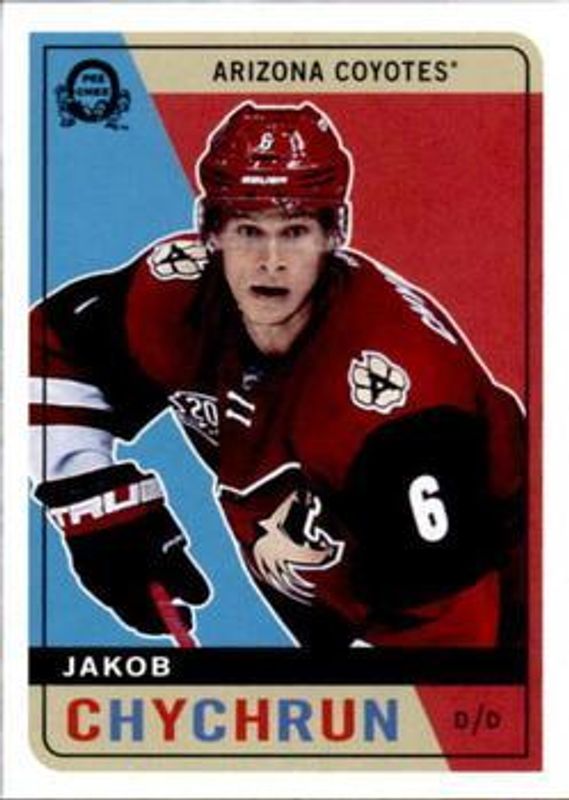 The Jakob Chychrun 2017 O-Pee-Chee #357 Retro Blank Back card is 1 of 6 Jakob Chychrun's card variations in the 2017 O-Pee-Chee set being tracked by Sports Card Investor, including Base, Rainbow Foil, Red, Retro, and Black Rainbow Foil /100.