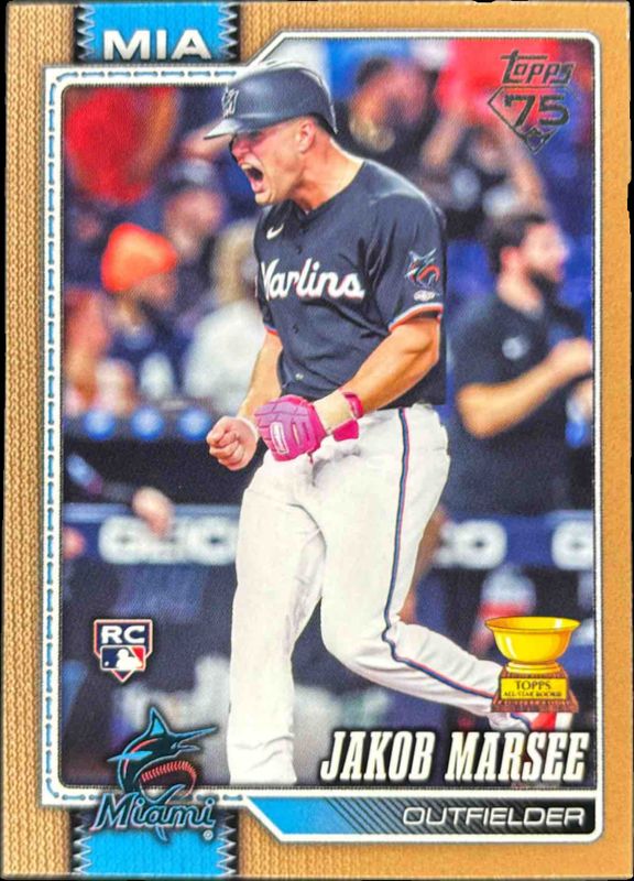 The Jakob Marsee 2026 Topps #37 Gold /2026 Rookie card is 1 of 78 Jakob Marsee's card variations in the 2026 Topps set being tracked by Sports Card Investor, including Base, Aqua Holo Foil, Aqua Rainbow Foil, Diamante Foil, and Holiday.