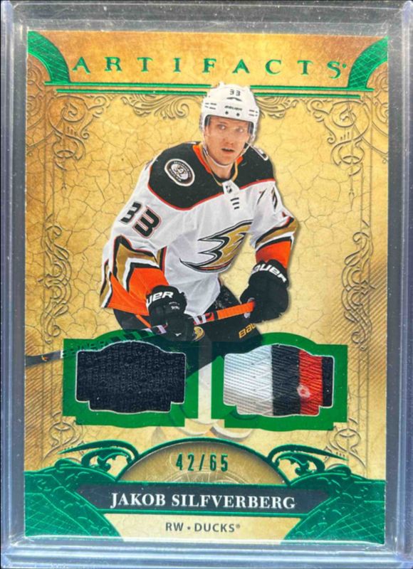 Jakob Silfverberg's Hockey cards are available in at least 68 sets. Jakob Silfverberg's biggest 7-day price movers are 2020 Upper Deck Artifacts #66 Material - Emerald /65, 2020 Upper Deck Artifacts #66 Material Orange /10, and 2020 Upper Deck Artifacts #66 Emerald /99.