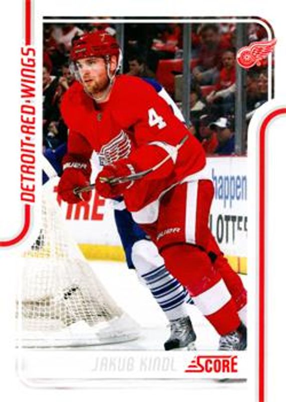 The Jakub Kindl 2011 Score #183 Glossy card is 1 of 4 Jakub Kindl's card variations in the 2011 Score set being tracked by Sports Card Investor, including Base, Black Ice, and Gold Rush.