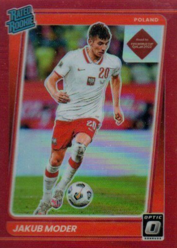 2021 Donruss Road to Qatar Rated Optic Red Prizm /149 Jakub Moder #179 Rookie RC