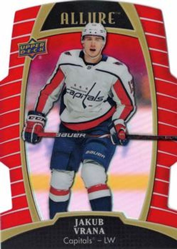 The Jakub Vrana 2019 Upper Deck Allure #32 Red Rainbow card is 1 of 23 Jakub Vrana's card variations in the 2019 Upper Deck Allure set being tracked by Sports Card Investor, including Base, Pewter, White Rainbow, Yellow Taxi, and Orange Slice /199.
