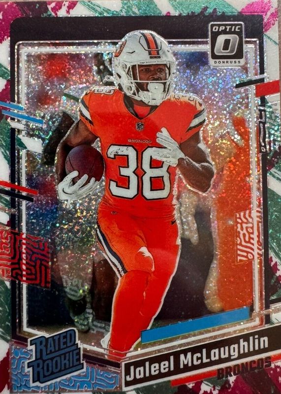This card is 1 of 53 Jaleel McLaughlin's card variations in the 2023 Optic set being tracked by Sports Card Investor, including Base, Blue Hyper, Blue Scope, Green Hyper, and Green Velocity.