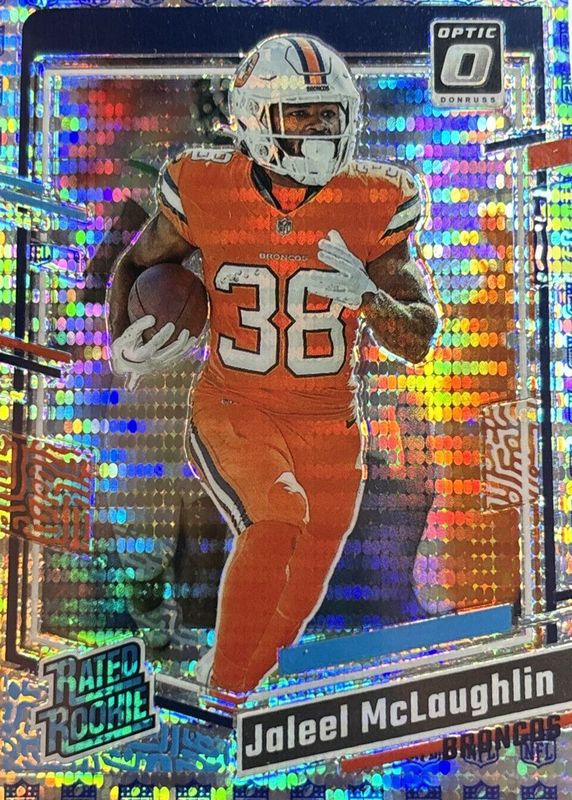 2023 Donruss Optic #232 Jaleel McLaughlin /32 NFL Shield Pulsar RC Rated Rookie
