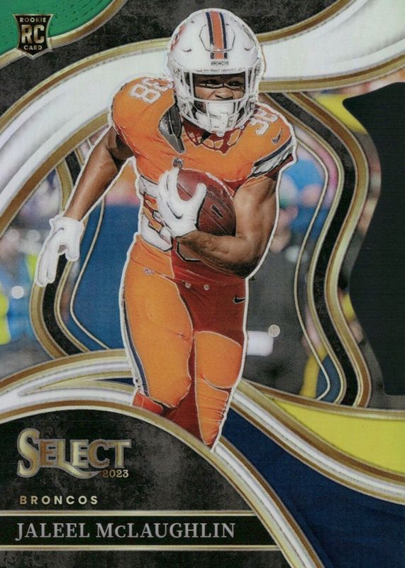 This card is 1 of 111 Jaleel McLaughlin's card variations in the 2023 Select set being tracked by Sports Card Investor, including Club Level, Concourse, Suite Level, Club Level Black & Gold Die-Cut, and Club Level Black & Green Die-Cut.