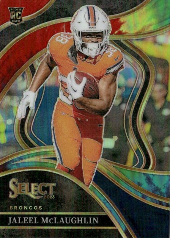 This card is 1 of 111 Jaleel McLaughlin's card variations in the 2023 Select set being tracked by Sports Card Investor, including Club Level, Concourse, Suite Level, Club Level Black & Gold Die-Cut, and Club Level Black & Green Die-Cut.