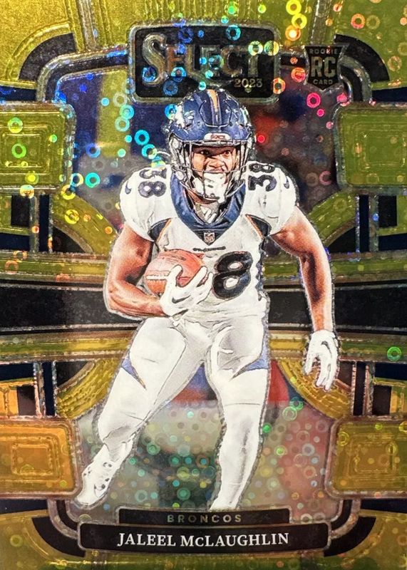 This card is 1 of 111 Jaleel McLaughlin's card variations in the 2023 Select set being tracked by Sports Card Investor, including Club Level, Concourse, Suite Level, Club Level Black & Gold Die-Cut, and Club Level Black & Green Die-Cut.