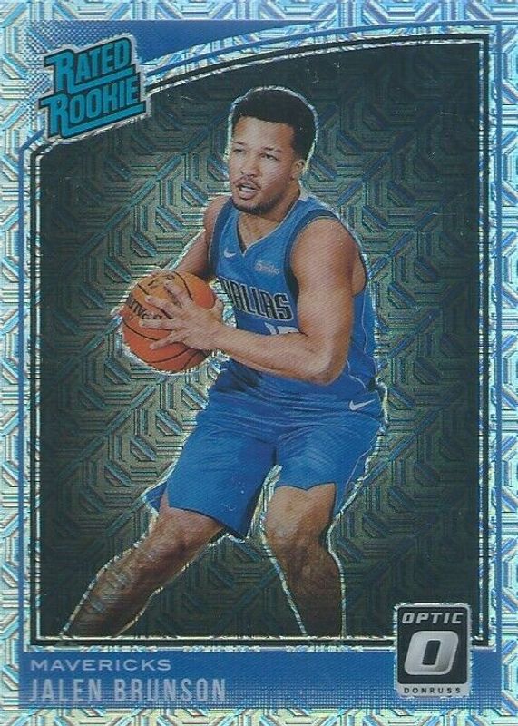 This card is 1 of 33 Jalen Brunson's card variations in the 2018 Optic set being tracked by Sports Card Investor, including Base, Blue Velocity, Checkerboard, Fast Break, and Holo.