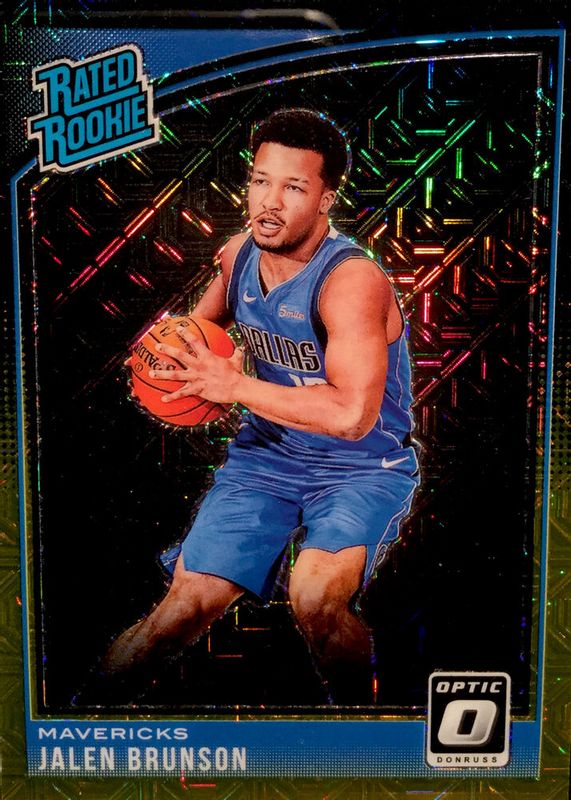 This card is 1 of 33 Jalen Brunson's card variations in the 2018 Optic set being tracked by Sports Card Investor, including Base, Blue Velocity, Checkerboard, Choice, and Fast Break.