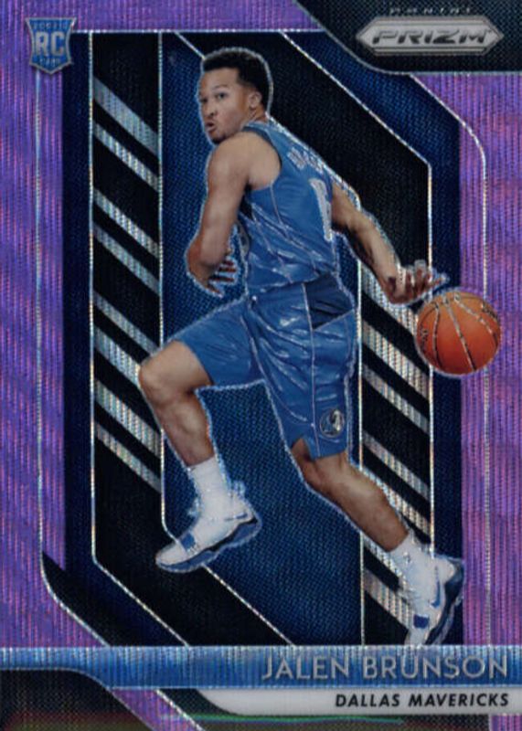 The Jalen Brunson 2018 Prizm #250 Purple Wave Rookie card in Raw condition has moved up $20.00 (+28.6%) in the last 30 days and was last sold for $90.00 .