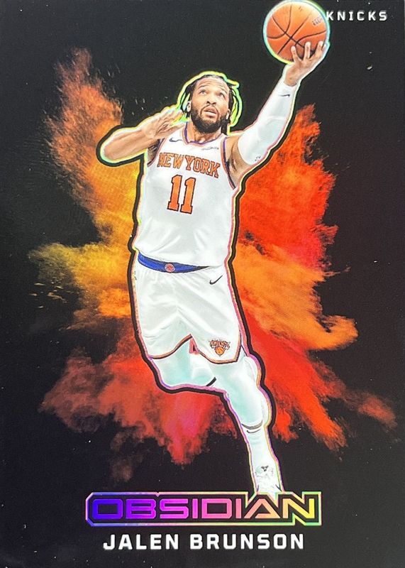 This card is 1 of 43 Jalen Brunson's card variations in the 2024 Obsidian set being tracked by Sports Card Investor, including Base, Electric Etch Caldera, Electric Etch International, Electric Etch Pink Pulsar, and Electric Etch Red Flood.