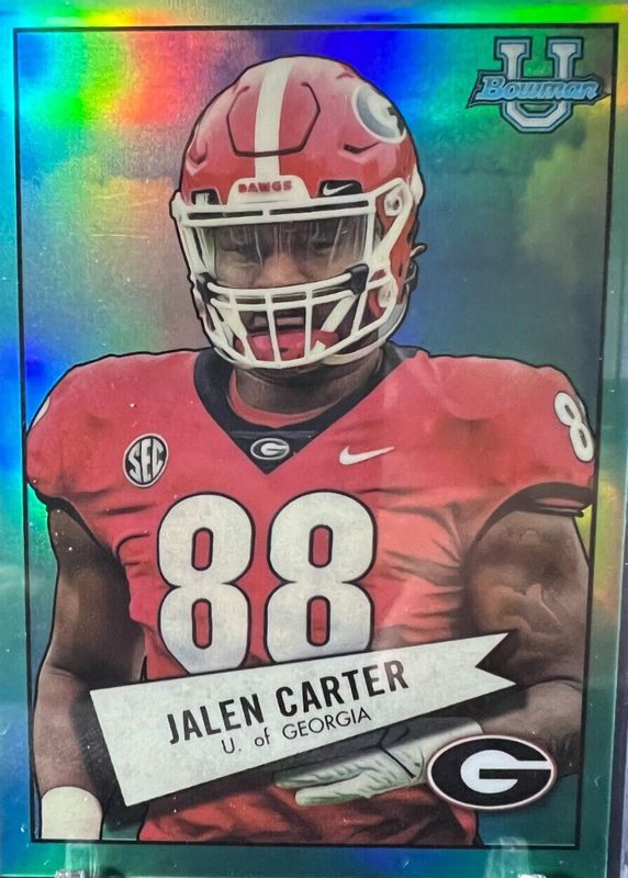JALEN CARTER /150 AQUA 1952 INSERT 2022 Bowman University Chrome GEORGIA EAGLES