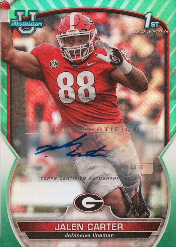 2022 Bowman University Chrome Prospect Green Refractor /99 Jalen Carter #37 Auto