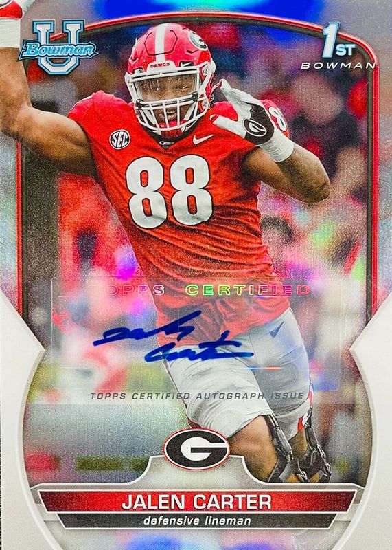 2022 Bowman University Chrome Jalen Carter 1ST REFRACTOR AUTO /499 GEORGIA #37