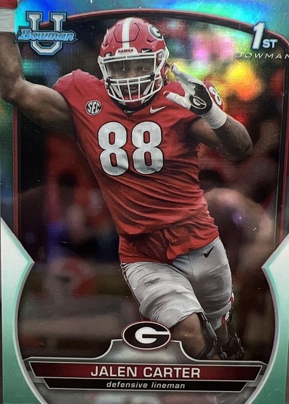 2022 Bowman University Chrome JALEN CARTER 1st Aqua Refractor /299 Georgia #37