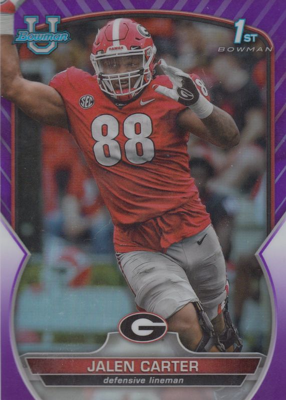 2022 Bowman Chrome University Jalen Carter 1st Purple Refractor /399 Eagles #37
