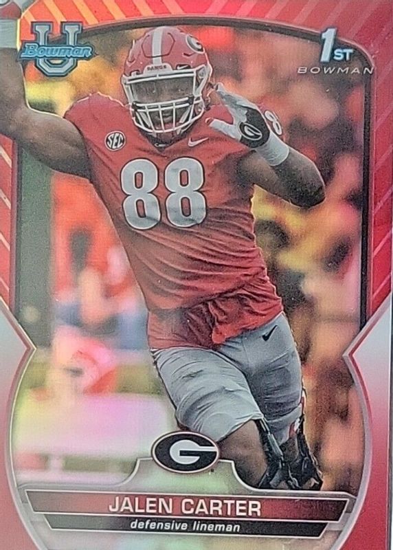 Auctions Ending Soon for Jalen Carter 2022 Bowman Chrome University #37 Prospects - Red Refractor /5 (1st) RAW