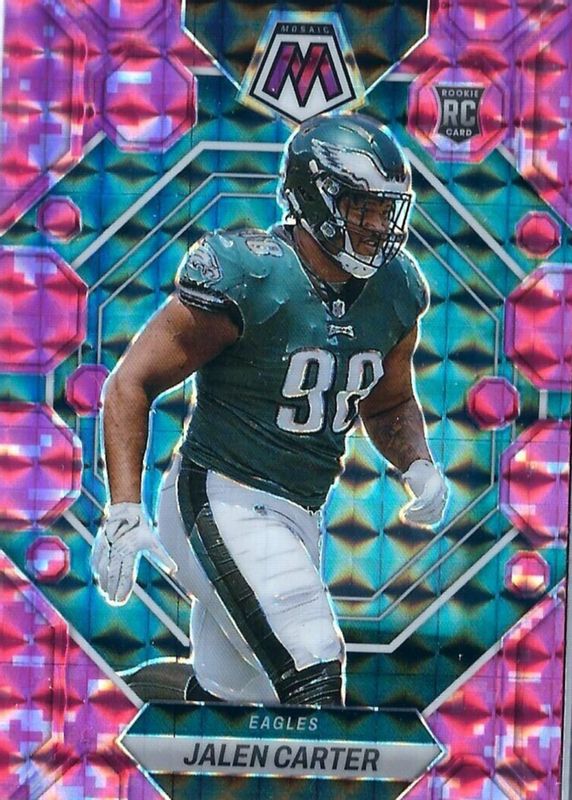The Jalen Carter 2023 Mosaic #328 Pink Camo Rookie card in Raw condition has moved down -$0.20 (-9.3%) in the last 30 days and was last sold for $1.95 .