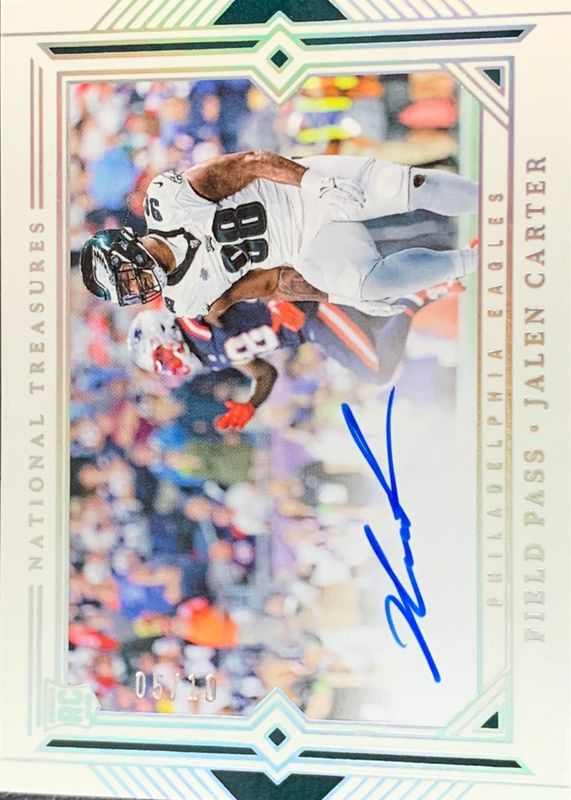Auctions Ending Soon for Jalen Carter 2023 National Treasures #FP-JC Rookie Signatures Field Pass - Holo Silver /10 RAW