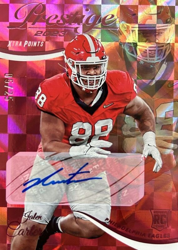 2023 Panini Prestige Football Jalen Carter Xtra Points Pink /25 Auto Eagles RC