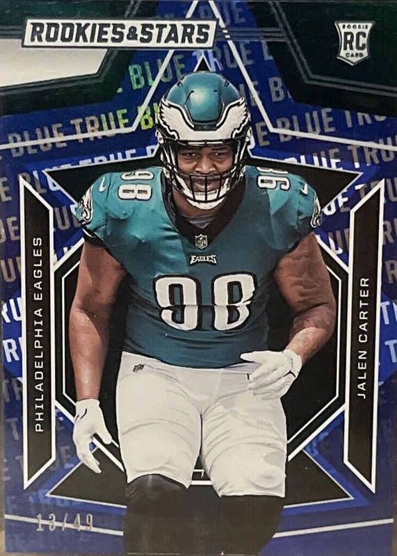 2023 Rookies & Stars Football #148 JALEN CARTER RC TRUE BLUE #'d /49 SP EAGLES