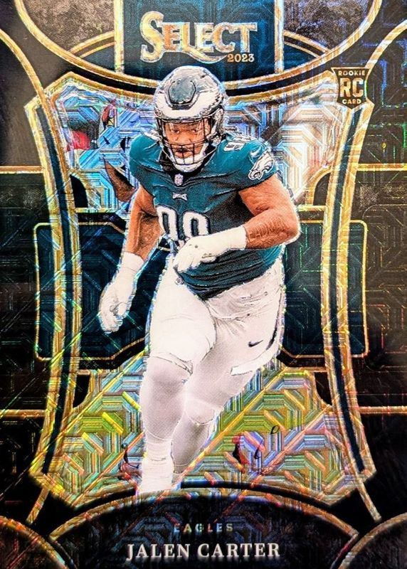 This card is 1 of 92 Jalen Carter's card variations in the 2023 Select set being tracked by Sports Card Investor, including Premier Level, Suite Level, Premier Level Black & Gold Die-Cut, Premier Level Black & Green Die-Cut, and Premier Level Black & Red Die-Cut.