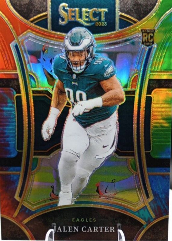 This card is 1 of 92 Jalen Carter's card variations in the 2023 Select set being tracked by Sports Card Investor, including Premier Level, Suite Level, Premier Level Black & Gold Die-Cut, Premier Level Black & Green Die-Cut, and Premier Level Black & Red Die-Cut.