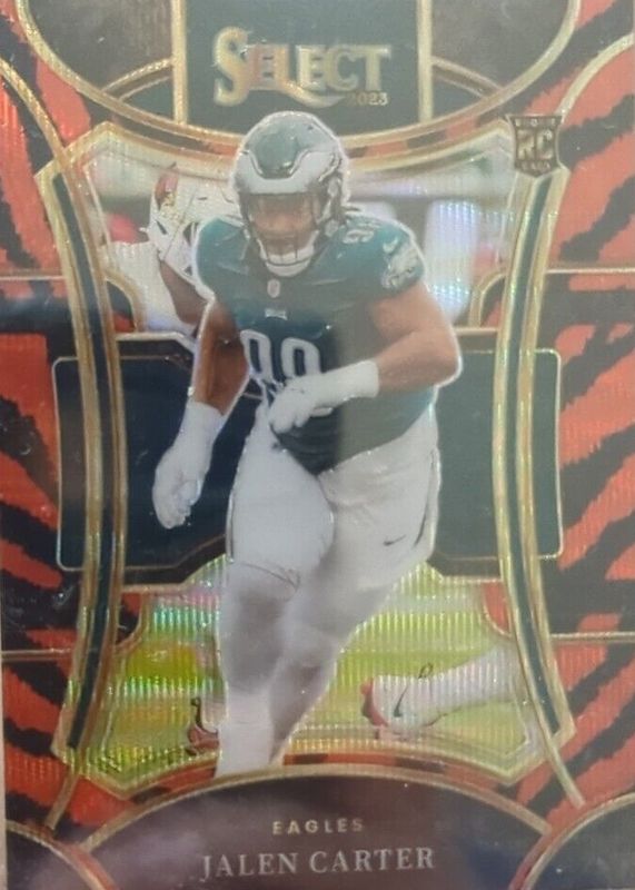 This card is 1 of 92 Jalen Carter's card variations in the 2023 Select set being tracked by Sports Card Investor, including Premier Level, Suite Level, Premier Level Black & Gold Die-Cut, Premier Level Black & Green Die-Cut, and Premier Level Black & Red Die-Cut.
