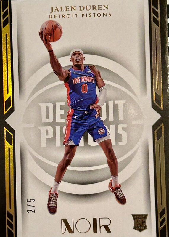 The Jalen Duren 2022 Noir #187 Icon Edition - Holo Gold /5 Rookie card in Raw condition has not changed in price in the last 30 days and was last sold for $49.99 .