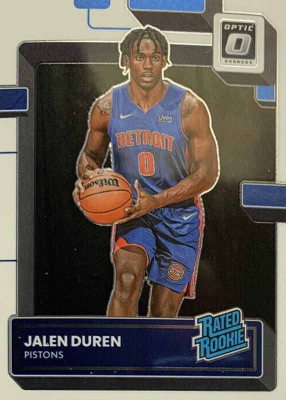 The Jalen Duren 2022 Optic #227 Base Rookie card in Raw condition has moved down -$1.60 (-53.2%) in the last 30 days and was last sold for $1.41 .