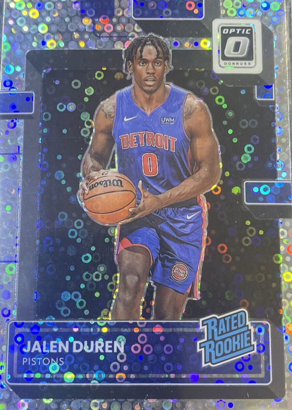 This card is 1 of 62 Jalen Duren's card variations in the 2022 Optic set being tracked by Sports Card Investor, including Base, Checkerboard, Choice Red & Green, Green Shock, and Holo.