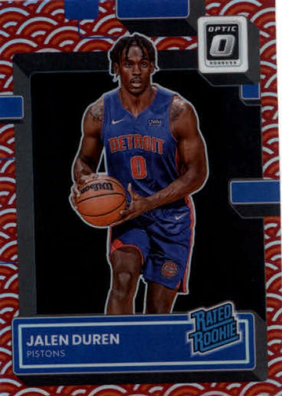 This card is 1 of 62 Jalen Duren's card variations in the 2022 Optic set being tracked by Sports Card Investor, including Base, Checkerboard, Choice Red & Green, Fast Break, and Green Shock.