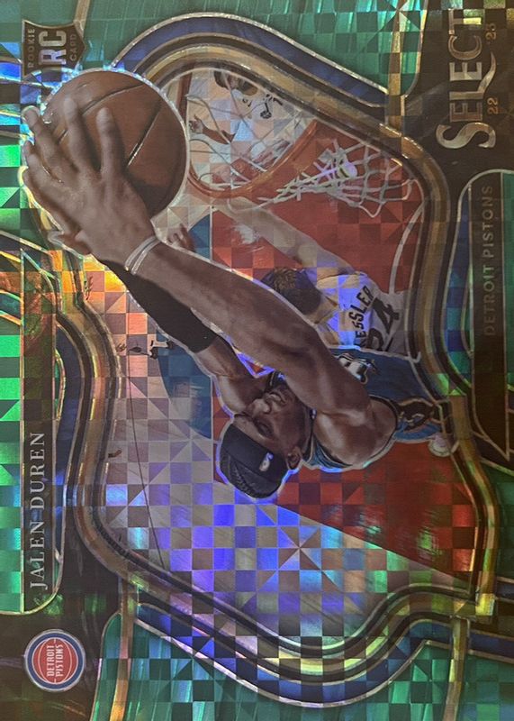 The Jalen Duren 2022 Select #286 Courtside Green /5 Rookie card in Raw condition has not changed in price in the last 30 days and was last sold for $349.99 .