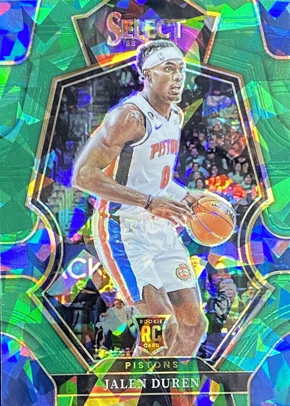 The Jalen Duren 2022 Select #176 Premier Level Green Ice Rookie card in Raw condition has not changed in price in the last 30 days and was last sold for $7.50 .
