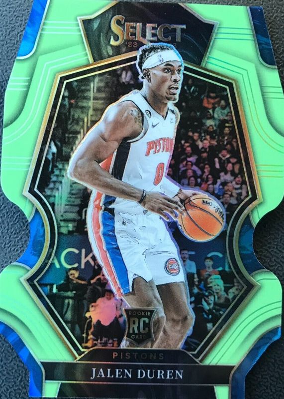 The Jalen Duren 2022 Select #176 Premier Level Light Green Die-Cut /49 Rookie card in Raw condition has not changed in price in the last 30 days and was last sold for $7.50 .