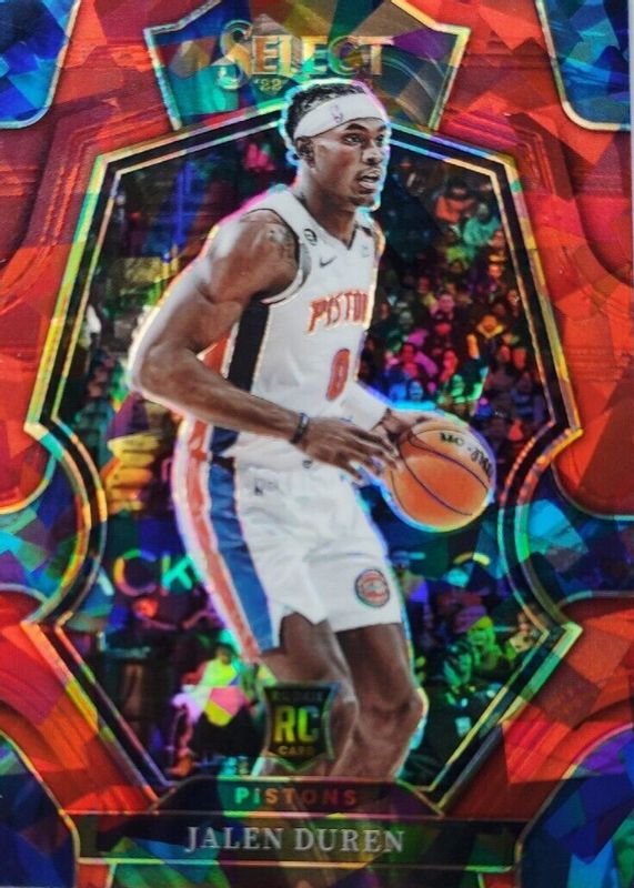 The Jalen Duren 2022 Select #176 Premier Level Red Cracked Ice Rookie card in Raw condition has moved down -$0.99 (-19.9%) in the last 30 days and was last sold for $4.00 .