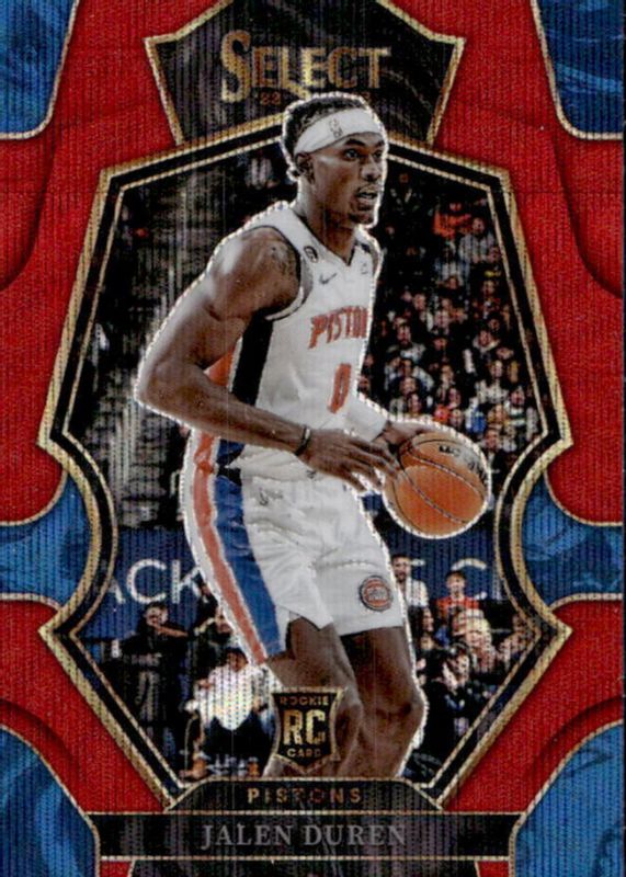 The Jalen Duren 2022 Select #176 Premier Level Red Wave Rookie card in Raw condition has moved up $1.36 (+137%) in the last 30 days and was last sold for $2.35 .
