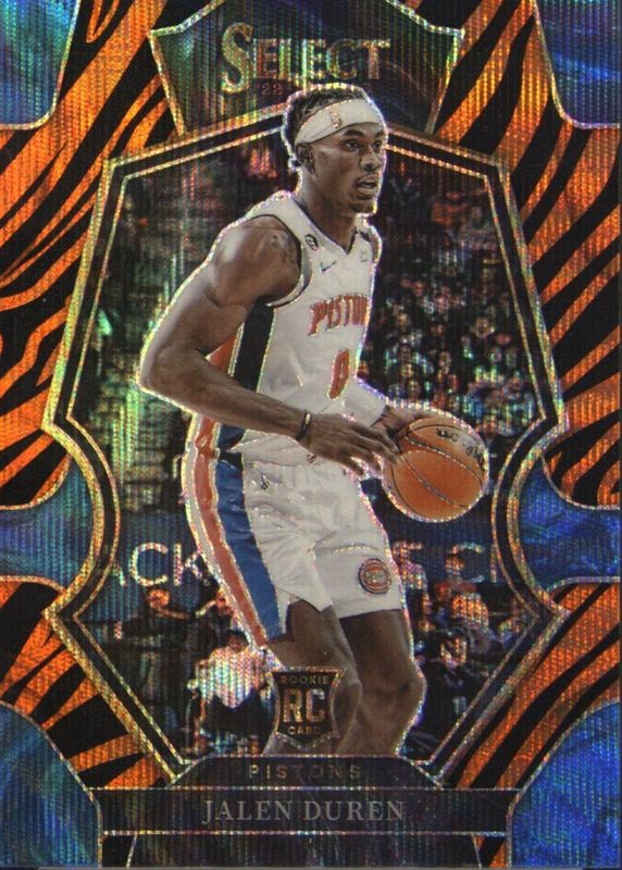The Jalen Duren 2022 Select #176 Premier Level Tiger /(SSP) Rookie card in Raw condition has not changed in price in the last 30 days and was last sold for $46.00 .