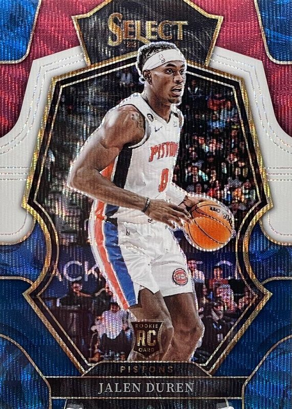 The Jalen Duren 2022 Select #176 Premier Level Tri-Color Rookie card in Raw condition has moved down -$2.95 (-59.6%) in the last 30 days and was last sold for $2.00 .