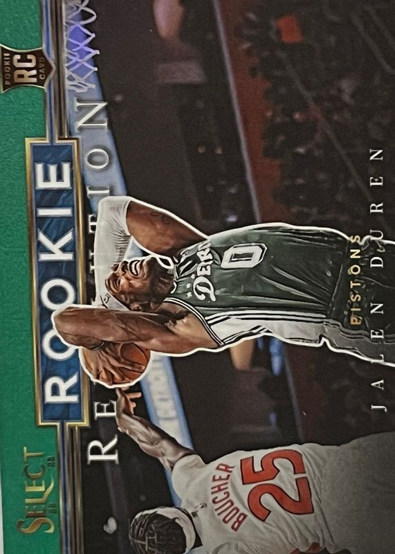 The Jalen Duren 2022 Select #27 Rookie Revolution - Green card in Raw condition has not changed in price in the last 30 days and was last sold for $1.04 .